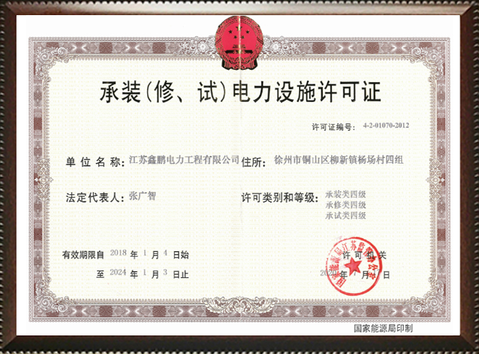 江蘇鑫鵬電力工程有限公司成立于2009年,位于素有“五省通衢”之稱的“古彭”徐州。注冊資金6000萬元,占地50畝。